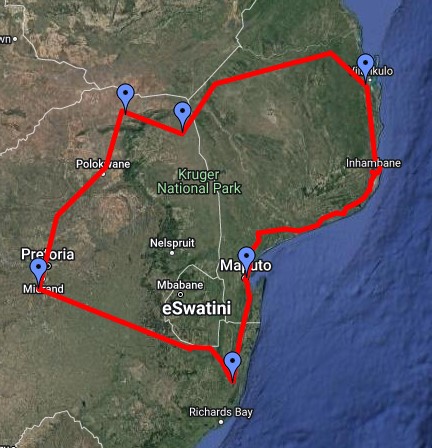Questo tour combina le attrazioni di Hluhluwe e Kruger National Parks, dove abbondano animali, che vivono nel loro ambiente naturale, con i parchi del Mozambico seguendo il percorso del Limpopo River. Si attraversano aree selvaggie e insplorate della regione di Banhine/Zinave. Si arriva cosi allle meravigliose spiagge deserte di Vialanculos e di Inhambane con gli arcipeloghi delle Isole Bazaruto. Il viaggio prosegue con la visita a Maputo,la capitale dove si notano ancora i segni della guerra e dove la popolazione vive ancora in condizioni di povertà Rientro in SudAfrica vicino ad Hluhluwe con visita ad un tipico villaggio Zulu dove sorge una scuola che vive soprattutto grazie alle offerte di chi va a visitarla ,infine ultimo safari nell'adiacente parco